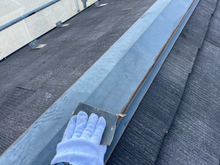 屋根 棟板金接続部 シーリング工事